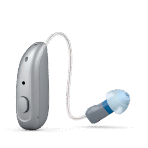 Compact and powerful 17-channel rechargeable miniRIE hearing aid with advanced sound clarity, Bluetooth streaming, and intelligent noise management for effortless everyday hearing.