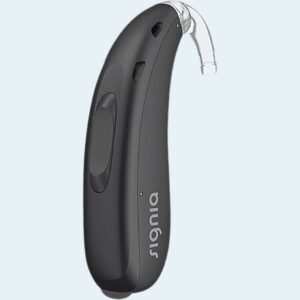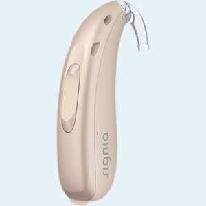 Signia Orion C&G P/SP 75 is a rechargeable BTE hearing aid with 12-channel digital processing, designed for hearing loss ranging from 10–120 dB. It offers adaptive directionality, clear speech amplification, and IP68-rated durability for dependable everyday performance.