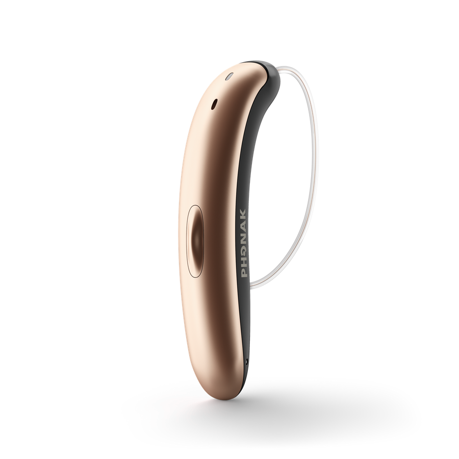 The Phonak Slim™ L90-R represents the highest technology level (90) within the Slim Lumity portfolio. Designed with a distinctive contoured form factor, it naturally aligns with the anatomy behind the ear, offering improved comfort and discreet wear while maintaining premium performance.